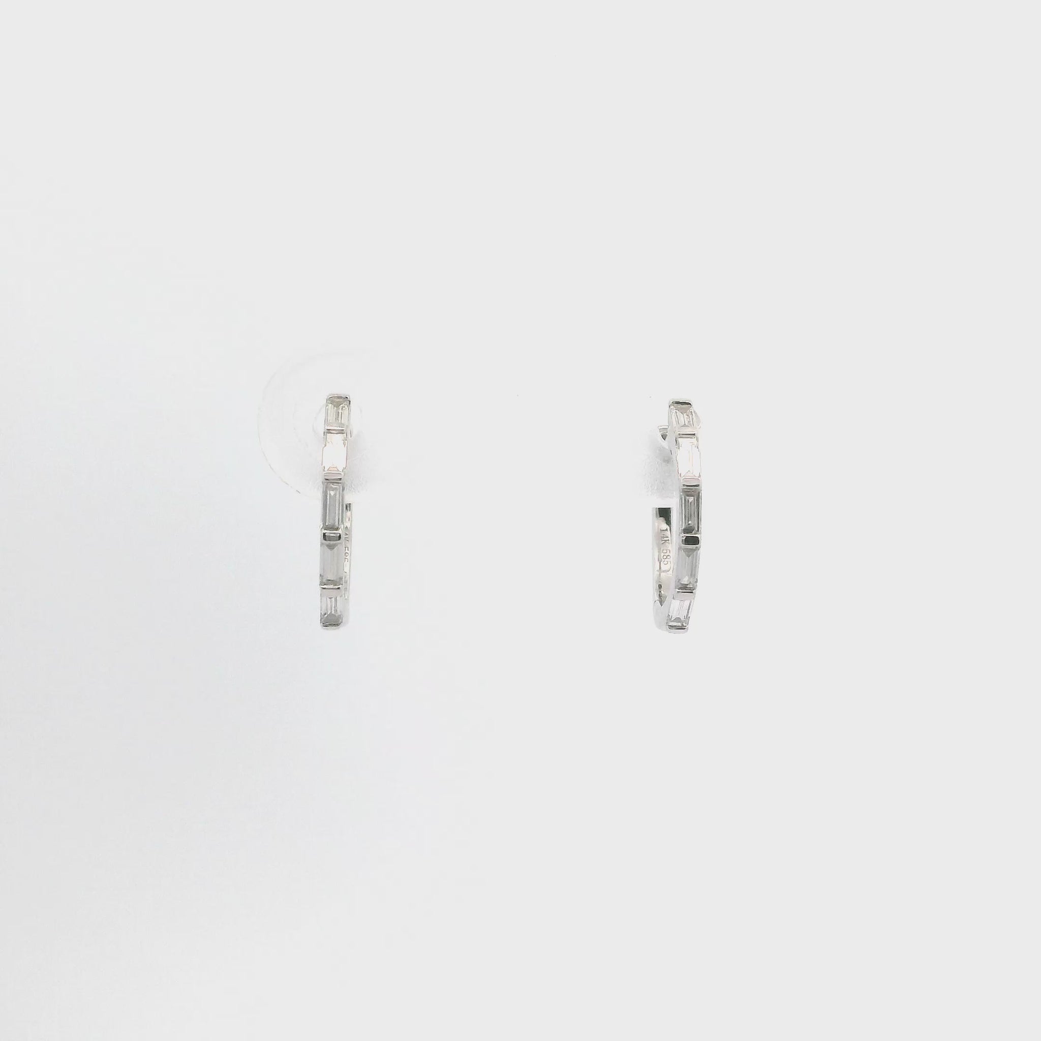 14KT WHITE GOLD NATURAL BAGUETTE DIAMOND HUGGIE EARRINGS 0.17CTTW  FG/VS